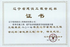 “葫蘆島市特殊教育學(xué)校新建教學(xué)樓工程”榮獲2017年度遼寧省建設(shè)工程世紀(jì)杯稱號(hào)