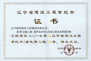 “葫蘆島市中心醫(yī)院兒科及內(nèi)科病房樓”榮獲2017年度遼寧省建設(shè)工程世紀(jì)杯稱號(hào)