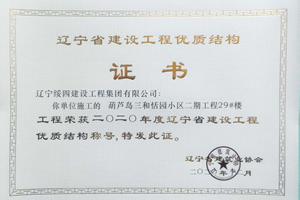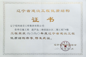 “葫蘆島三和恬園小區(qū)二期工程7#樓”榮獲2020年度遼寧省建設(shè)工程優(yōu)質(zhì)結(jié)構(gòu)稱號(hào)