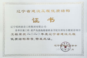 “葫蘆島渤海船舶職業(yè)學(xué)院實(shí)訓(xùn)綜合樓建設(shè)項(xiàng)目”榮獲2020年度遼寧省建設(shè)工程優(yōu)質(zhì)結(jié)構(gòu)稱號(hào)