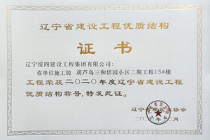 “葫蘆島三和恬園小區(qū)二期工程15#樓”榮獲2020年度遼寧省建設(shè)工程優(yōu)質(zhì)結(jié)構(gòu)稱號(hào)
