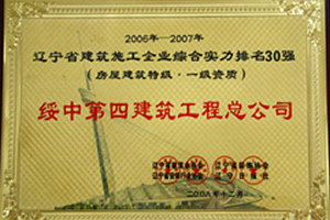 遼寧省建筑施工企業(yè)綜合實(shí)力排名30強(qiáng)