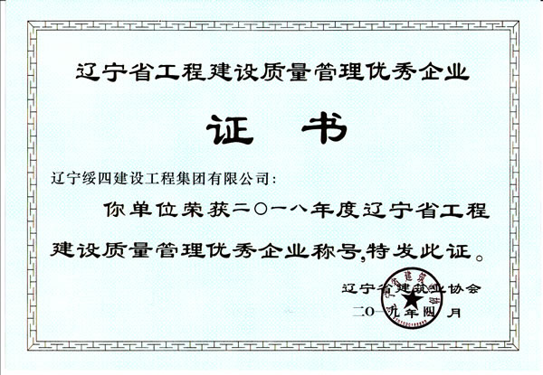 遼寧省工程建設(shè)質(zhì)量?jī)?yōu)秀企業(yè)