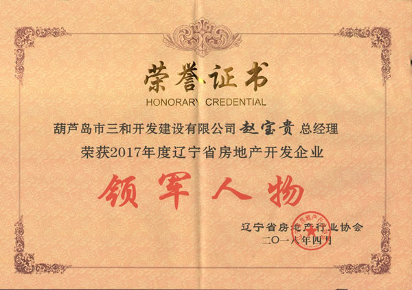 房地產(chǎn)開發(fā)企業(yè)領(lǐng)軍人物獎狀