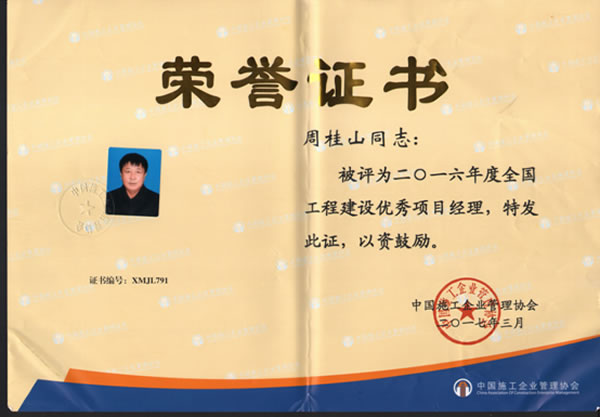 大會(huì)表彰了2016年度獲得全國優(yōu)秀施工企業(yè)稱號(hào)的單位并頒發(fā)了證書。我公司榮獲“2016年度全國優(yōu)秀施工企業(yè)”稱號(hào),周桂山同志榮獲“全國工程建設(shè)優(yōu)秀項(xiàng)目經(jīng)理”稱號(hào)。