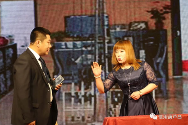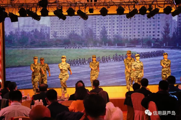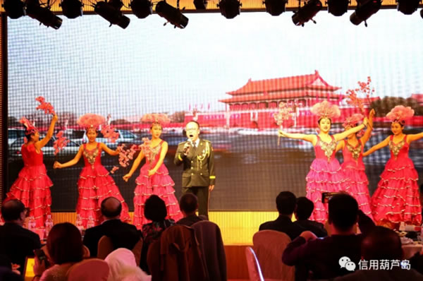 聯(lián)誼會上的文藝演出可以說是精彩紛呈,高潮迭起。歡快的開場舞引燃了全場的熱情,詩朗誦《誠信之歌》把每一個會員單位融入其中,用詩歌的形式講述著誠信的故事,讓大家心潮澎湃,備受鼓舞。歌曲《闖天涯》、《美麗的神話》還在耳邊余音繚繞。誠信主題小品《姜太公釣魚》讓大家在歡笑中體會誠信的重要,軍旅舞蹈英姿颯爽,鐵骨錚錚。阜新銀行綏中支行小伙伴們表演的三句半《會員贊》,用生動詼諧的方式為多家會員單位的優(yōu)異成績點贊,迎來掌聲陣陣!段覀兊淖鎳杼鸹ㄏ恪烦鋈珗鏊屑钨e熱愛祖國的心聲。