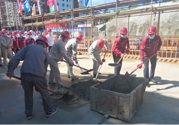 該項目于今年4月21日開工。我集團秉承多年來堅持的“干一項工程、出一項精品,拓一方市場、交一方朋友”建設(shè)理念,年初承接該建設(shè)任務(wù)之時,就積極策劃配合業(yè)主辦理手續(xù),保證工程按期開工。建設(shè)過程中,項目團隊認真編制技術(shù)文件精準指導(dǎo)施工,實施樣板制、交底制、驗收制等一系列規(guī)章制度,積極推廣應(yīng)用四新技術(shù),履行安全管理、文明、綠色、環(huán)保施工,在封閉管理、物料堆放、車輛沖洗、現(xiàn)場硬化、渣土車封閉運輸?shù)确矫媛鋵崜P塵治理六個百分百,嚴把質(zhì)量關(guān),如期實現(xiàn)主體封頂。