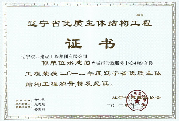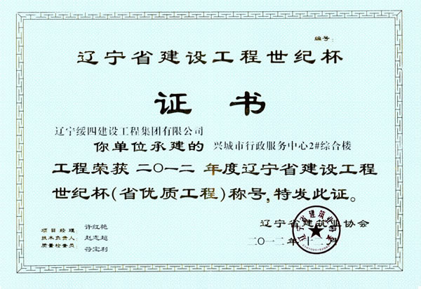 2013年3月12日在沈陽召開2012年度遼寧省建設工程世紀杯(省優(yōu)質(zhì)工程)頒獎大會: