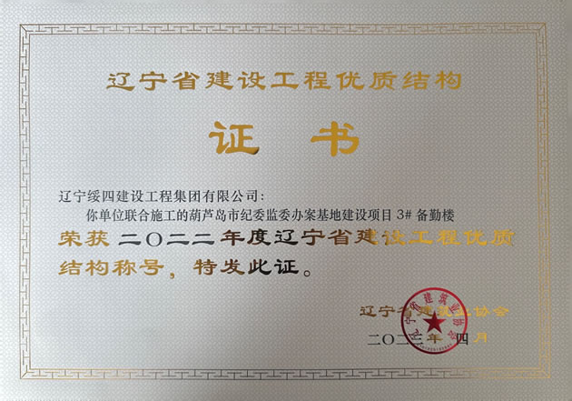 葫蘆島市紀(jì)委監(jiān)委辦案基地建設(shè)項(xiàng)目 3# 備勤樓榮獲2022年度遼寧省建設(shè)工程優(yōu)質(zhì)結(jié)構(gòu)稱號