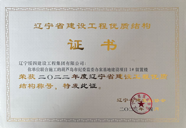 | 葫蘆島市紀(jì)委監(jiān)委辦案基地建設(shè)項(xiàng)目1# 留置樓榮獲2022年度遼寧省建設(shè)工程優(yōu)質(zhì)結(jié)構(gòu)稱(chēng)號(hào) |