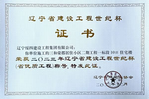 三和榮郡居住小區(qū)二期工程一標(biāo)段10#住宅樓 榮獲2023年遼寧省建設(shè)工程世紀(jì)杯(省優(yōu)質(zhì)工程)稱號(hào)